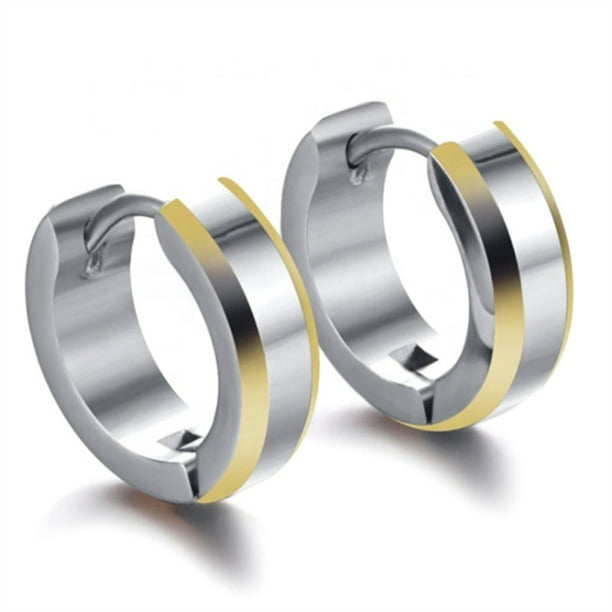 Titanium Hypoallergenic Beveled Edge Earrings With Yellow Gold For Sensitive Ears Walmart Com